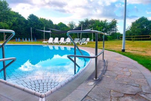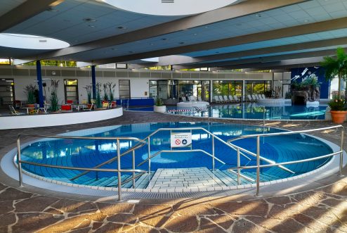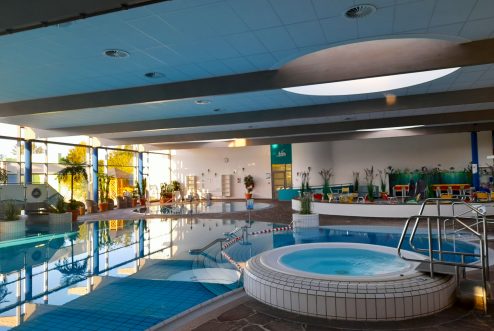 Anschließend an die Freizeithalle befindet sich das 27° C warme Sportbecken.