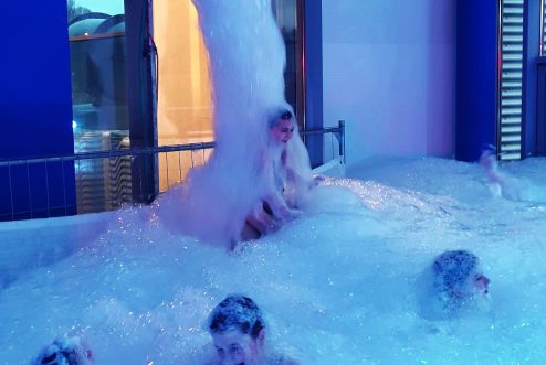 In der Freizeithalle erwartet Sie eine lagunenähnliche Wasserlandschaft mit Strömungskanal, Grotte, Nichtschwimmer-Bereich und Schwimmkanal zum Außenbecken. Insgesamt laden ca. 340 qm Wasserfläche zu viel Badespaß ein. Im 30° C warmen Wasser bei 1,30 m Tiefe können Sie sich treiben lassen oder auf den Sprudelliegen im Außenbecken entspannen.